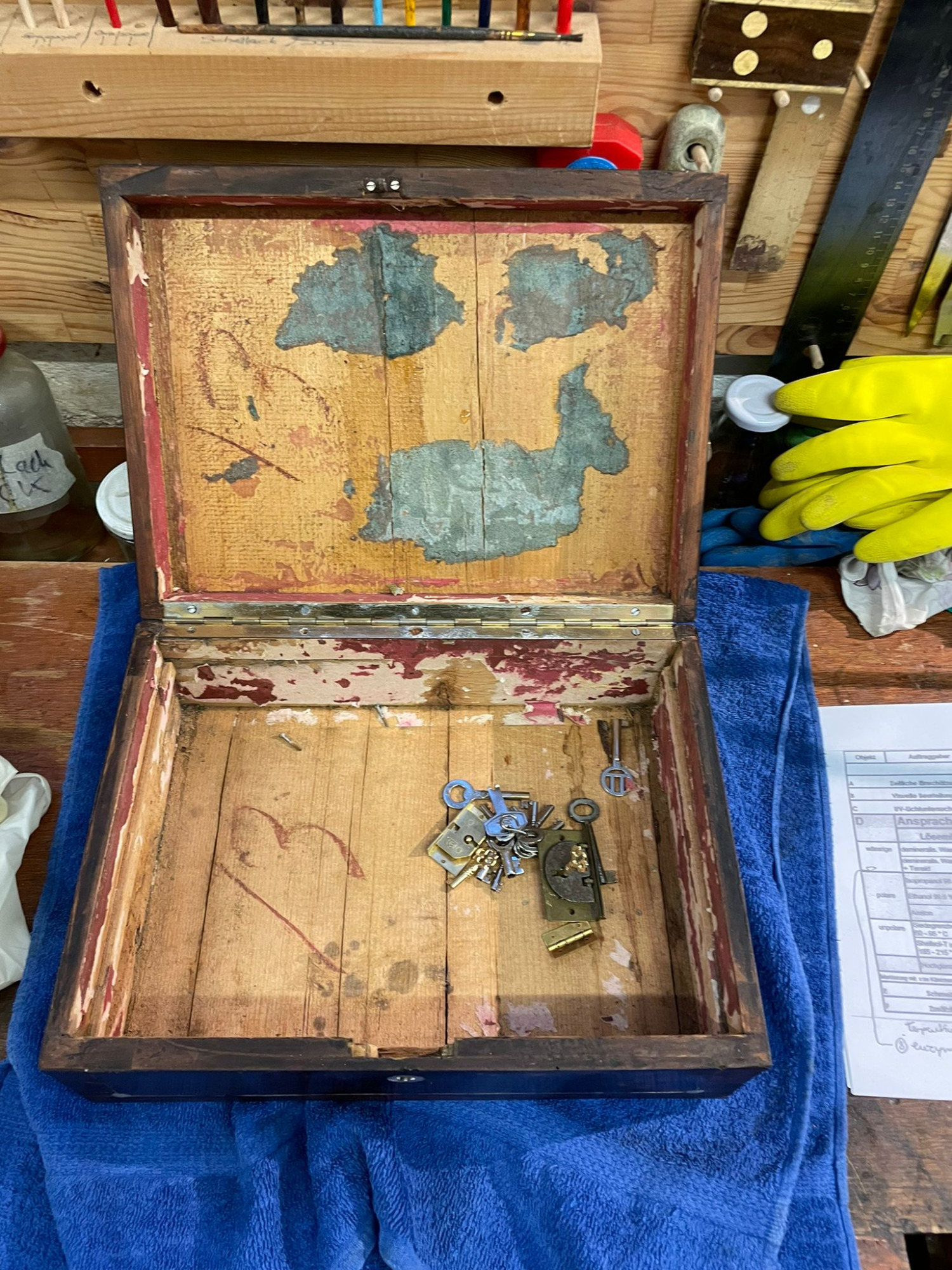 • Materialkunde: Einführung in historische Materialien, wie Knochenleim, Schellack, etc.