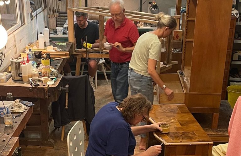 Da eine fachgerechte Restaurierung Zeit braucht, wird ein Objekt in einem Kursblock meist nicht vollständig fertiggestellt. Sie erhalten jedoch das komplette Know-How, um die Arbeit zu Hause sicher zu beenden oder Ihr Projekt in einem Folgekurs fortzuführen.
